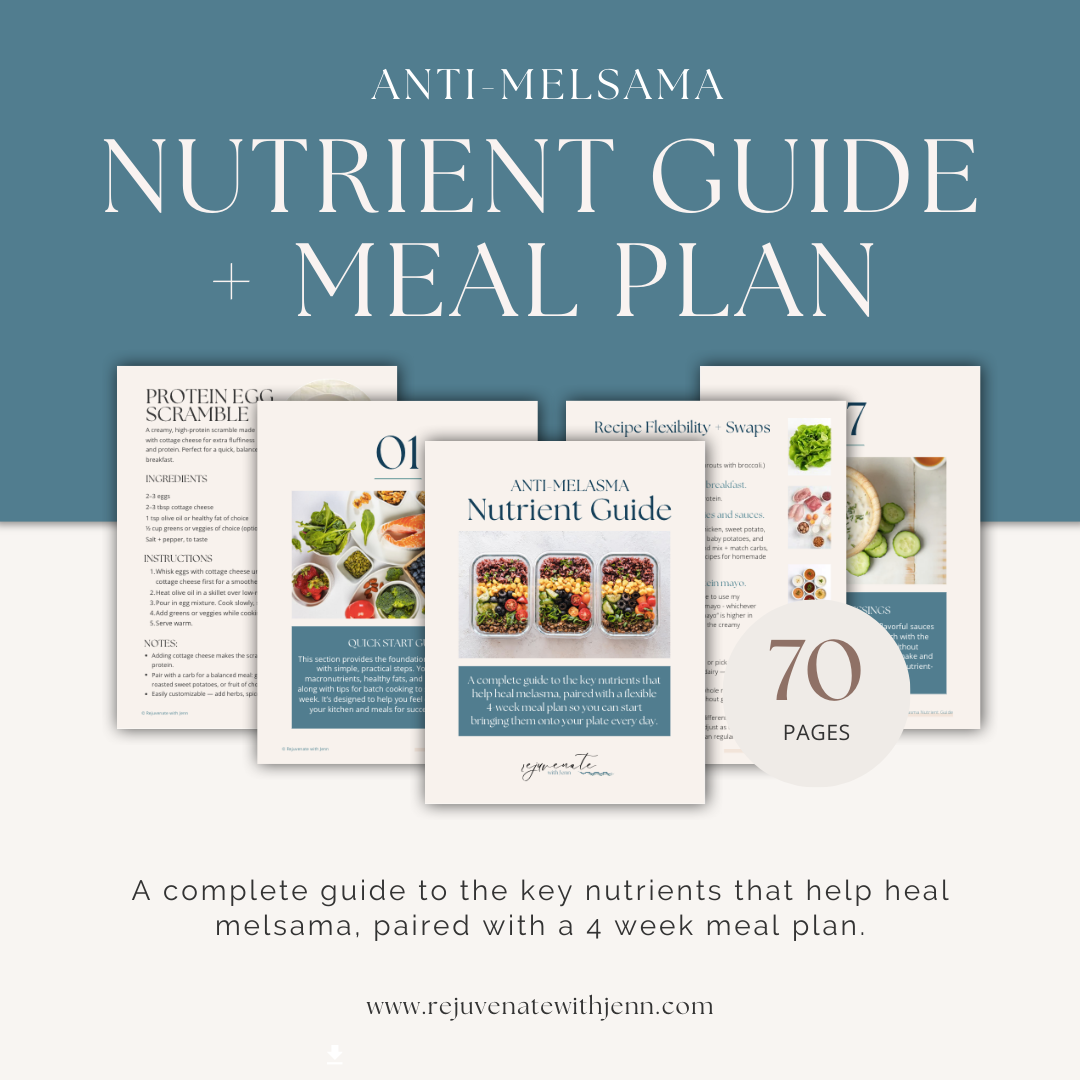 INTRODUCING: The Melasma Nutrient Guide + 4-Week Meal Plan — your step-by-step roadmap to take the guesswork out of eating for your skin.